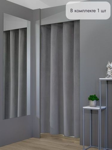 Краткое описание «Штора для примерочной и дома на люверсах бархатная цвет серый, 1 шт»